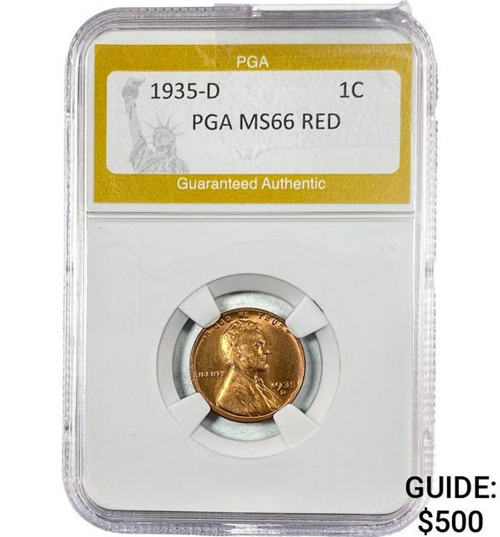 1935-D Lincoln Wheat 1C PGA MS66 RED