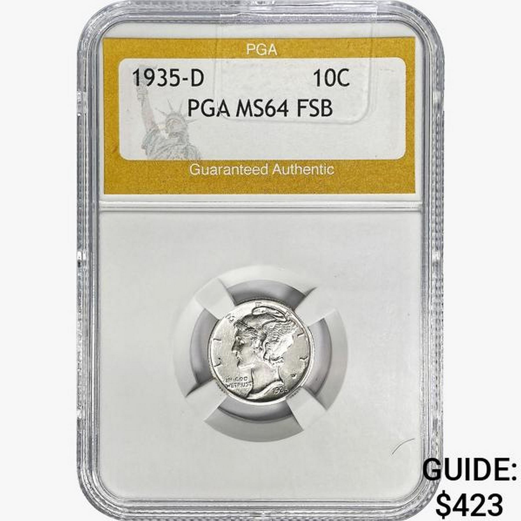 1935-D Mercury Silver Dime PGA MS64 FSB