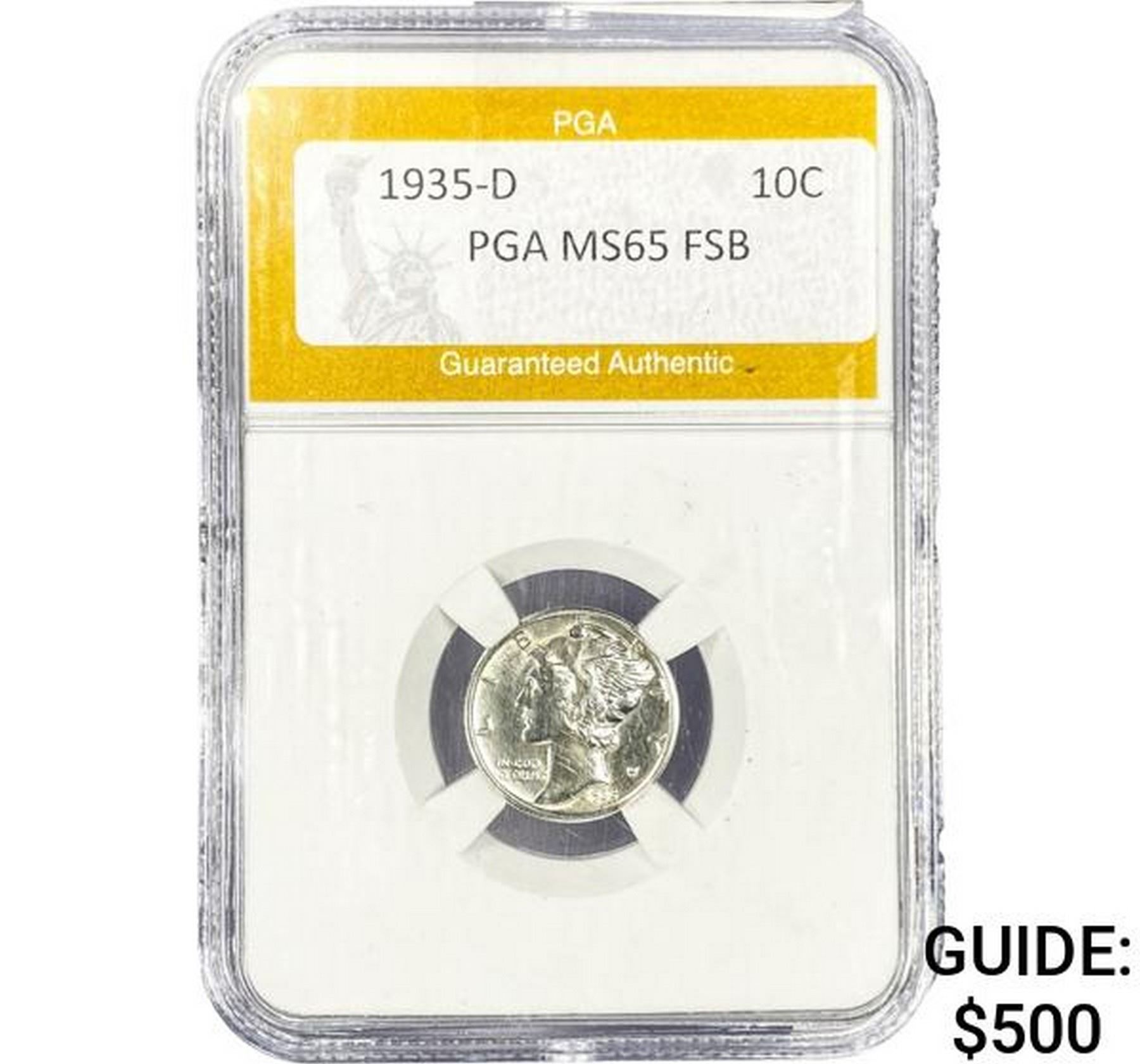 1935-D Mercury Silver Dime PGA MS65 FSB