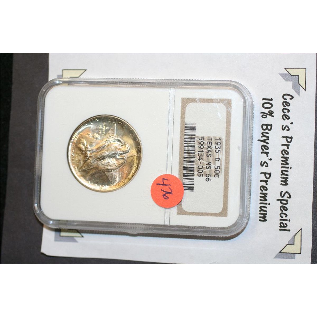 1935-D Texas Commerative Half Dollar, NGC Graded MS66 **CeCe's Premium Special 10% Buyer's Premium-This Lot Only!**