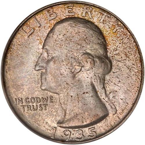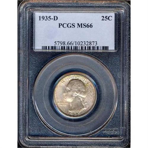 <b>1935-D Washington Quarter Dollar. PCGS graded MS66.</b> Lightly toned. Displaying a uniform satiny brilliance on each side <b>(PCGS # 5798)</b> <i>