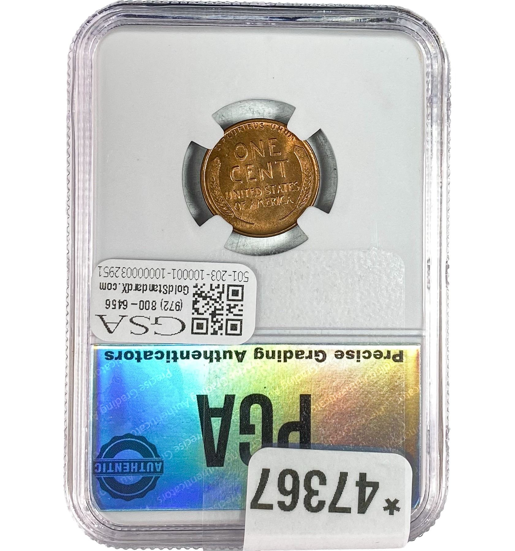 e. Coins sold referencing a third-party grading service are sold “AS IS” without any express or implied warranty, except for a guarantee by GSA that they are genuine. Removal or alteration of the holder, voids all of Bidder’s claims concerning that Product. Certain warranties may be available from the grading services and Bidders are referred to them for further details: Numismatic Guaranty Corporation (NGC), PO Box 4776, Sarasota, FL 34230, www.ngccoin.com/services/writtenguarantee.asp; Professional Coin Grading Services (PCGS), PO Box 9458, Newport Beach, CA 92658, www.pcgs.com/guarantee.html; ANACS, 6555 S. Kenton St., Ste. 303, Englewood, CO 80111; and Independent Coin Grading Co. (ICG), 7901 East Bellview, Ave., Suite 50, Englewood, CO 80111.