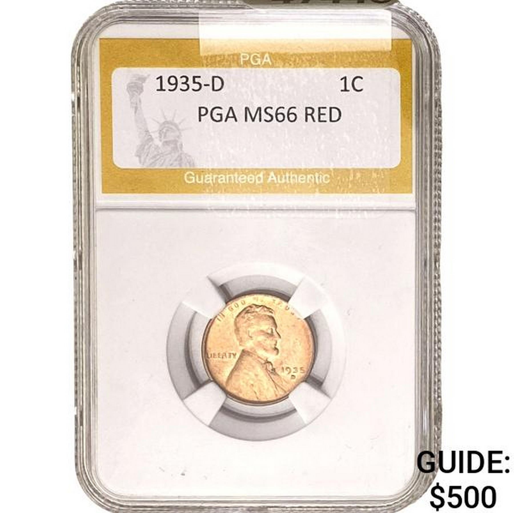 1935-D Wheat Cent PGA MS66 RED
