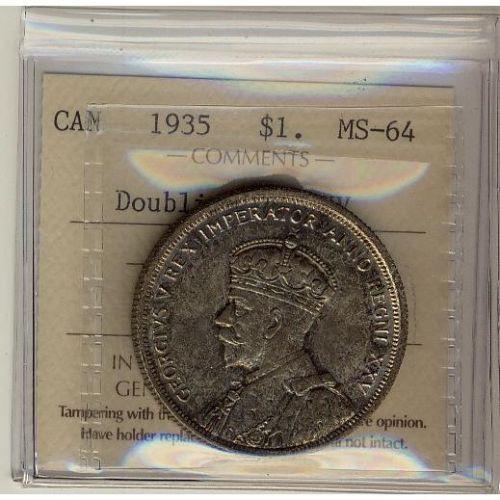 1935 "Doubling XXV" $1 ICCS MS64, a nice example with nice toning