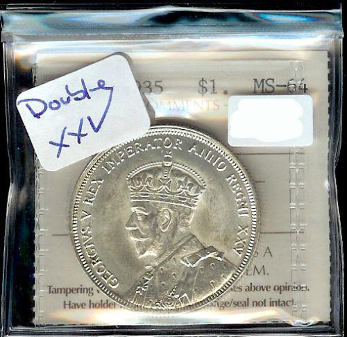 1935 Doubling of XXV ICCS MS64PQ Nicely toned. Popular variety!