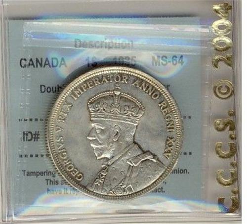 1935 "Doubling on Indian & Voyageur $1 CCCS MS64, lightly toned. Interesting variety!