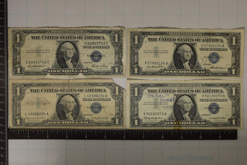 SEALS. 1957-A HAS A TOP LEFT CORNER MISSING AND THE 1957-B HAS INK ON THE OBVERSE ALSO THE 1935-A LOOKS LIKE IT WAS TAPED BEFORE ON THE EDGES