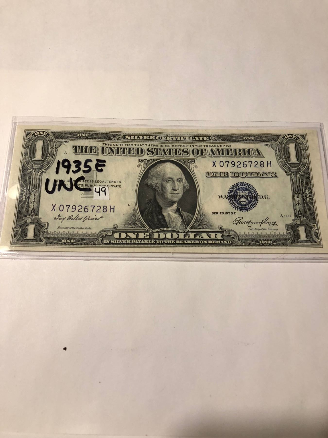 1935 E Series Crisp Uncirculated $1.00 Silver Certificate Bill Serial # X07926728H