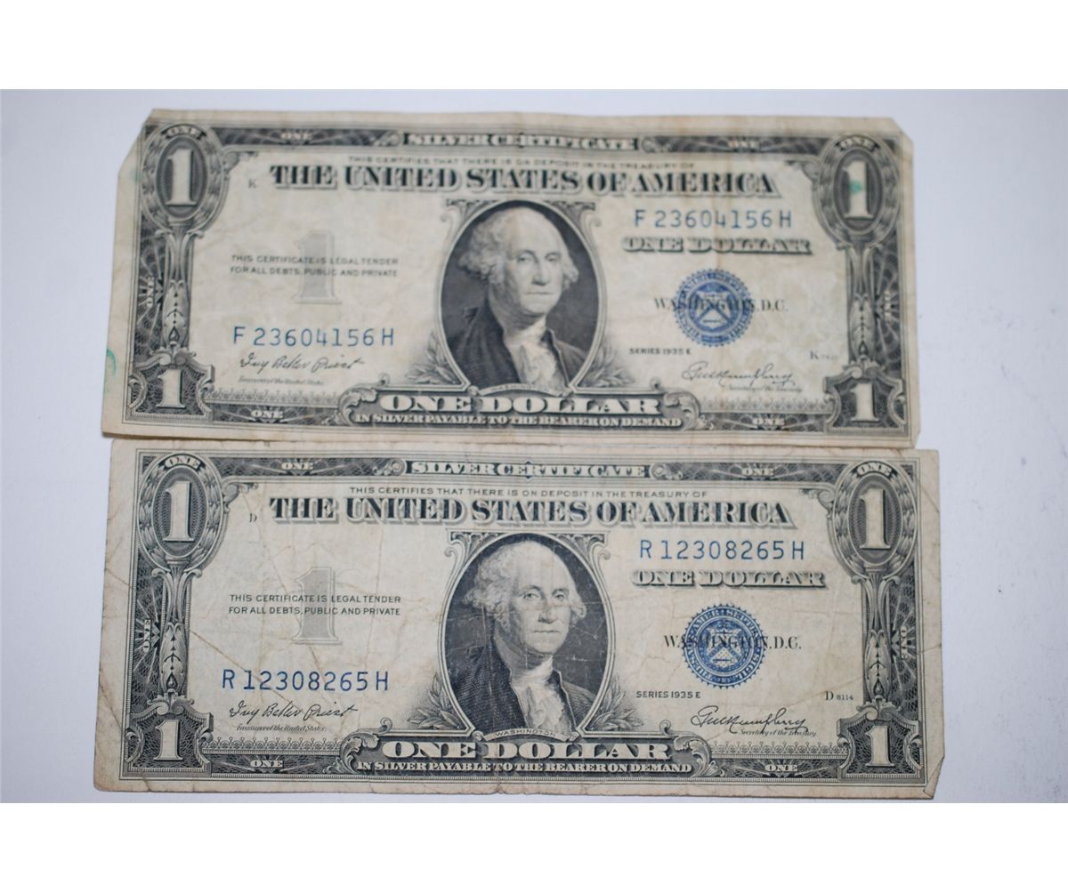 1935-E US Silver Certificate $1; Blue Seal; Lot of 2; EST. $5-10