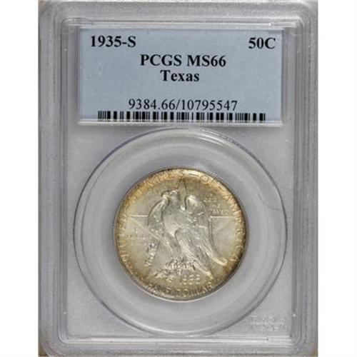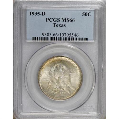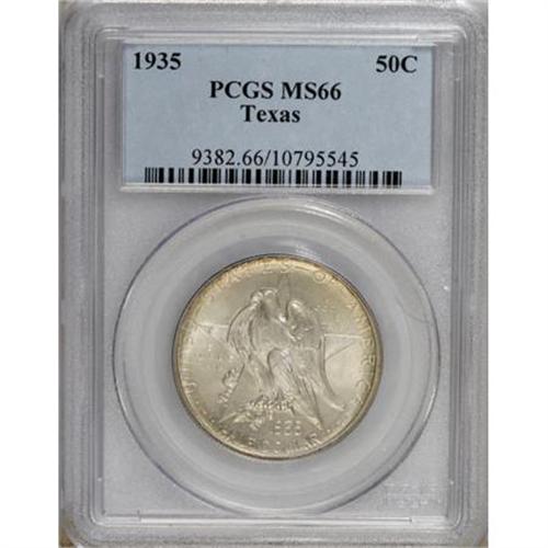<B>1935 SET Texas PDS Set MS66 PCGS.</B></I> Each coin grades MS66. The set is uniform in appearance with light golden-brown toning and strong underlying mint luster. The coins are consecutively numbered, a strong indication that this was an original set when it was submitted.<BR><BR><b>Shipping:</b> Coins & Currency (<a target="_blank" href="http://www.heritageauctions.com/common/shipping.php">view shipping information</a>)
