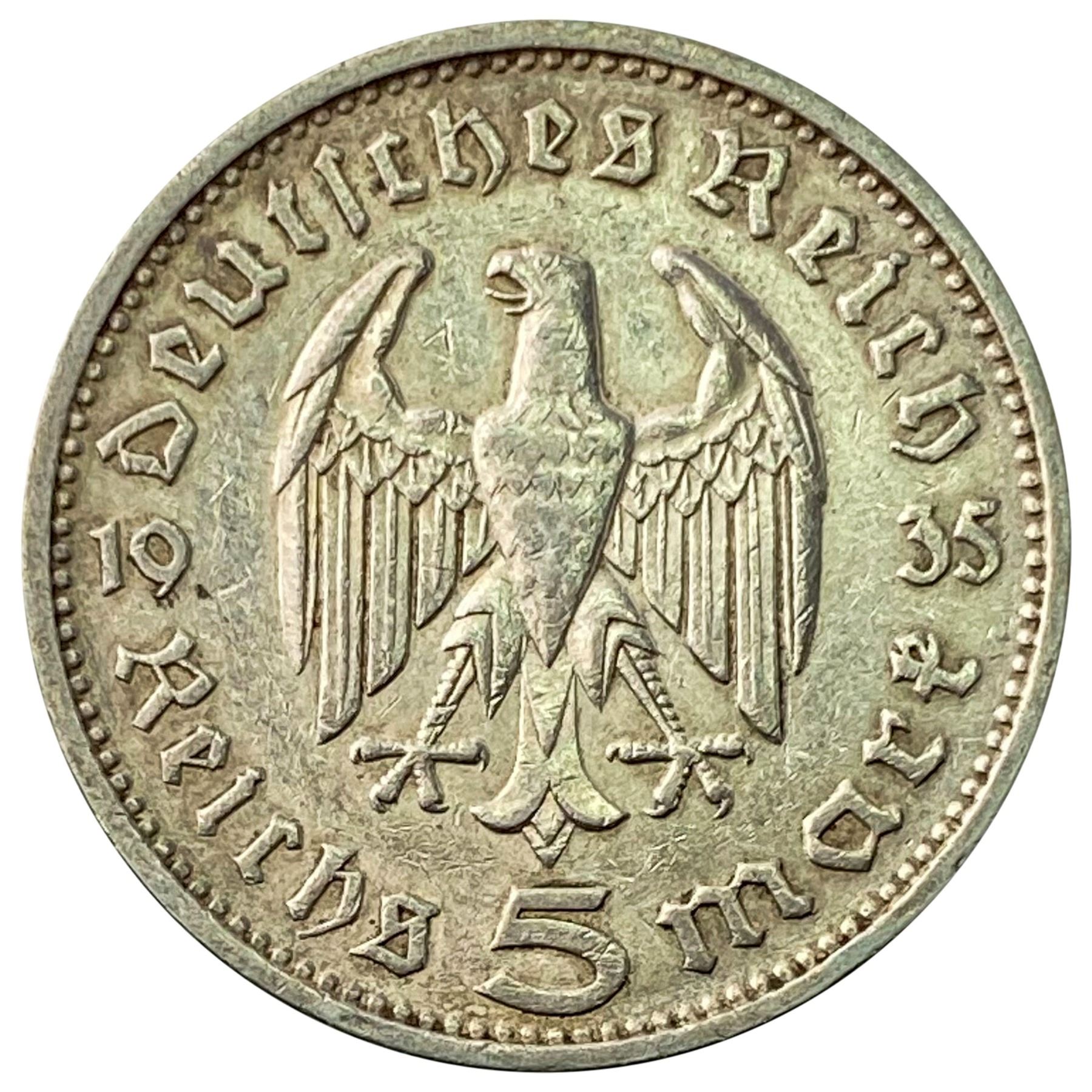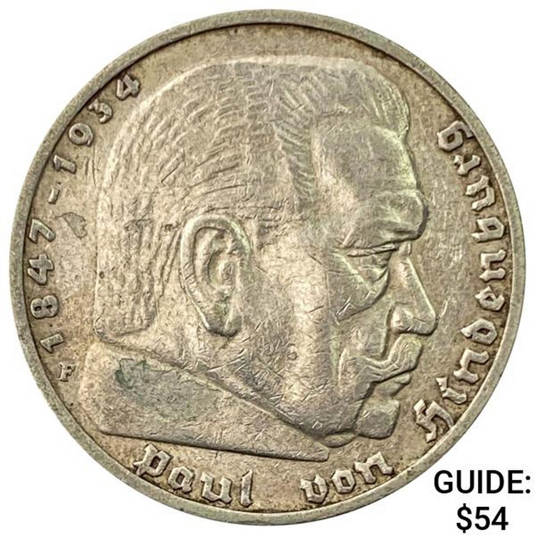 1935-F Germany Silver 5 Reichsmark CLOSELY UNCIRCULATED