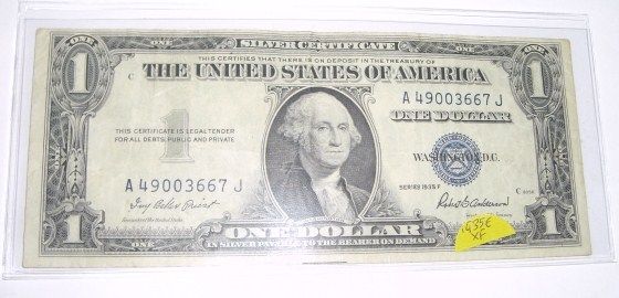 1935 F SERIES $1 SILVER CERTIFICATE SERIAL # A49003667J *RARE EXTRA FINE HIGH GRADE*!! ***Coin, Currency & All Items Listed in this auction - Grades, Conditions and Values are not Safe Deposit Coins LLC Responsibilty. Grades, Condition and Values are determined by Consigner(s) & Buyers ONLY