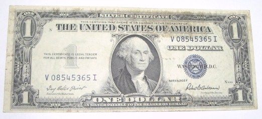 1935 F SERIES $1 SILVER CERTIFICATE SERIAL # V08545365I *PLEASE LOOK AT PICTURE TO DETERMINE GRADE*!! ***Coin, Currency & All Items Listed in this auction - Grades, Conditions and Values are not Safe Deposit Coins LLC Responsibilty. Grades, Condition and Values are determined by Consigner(s) & Buyers ONLY