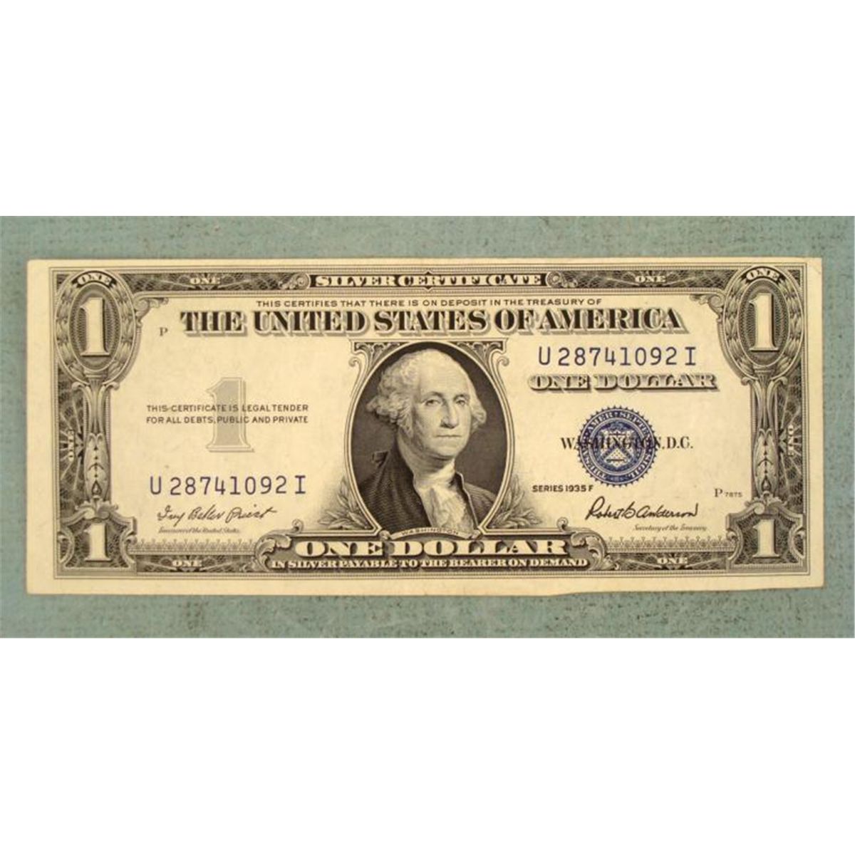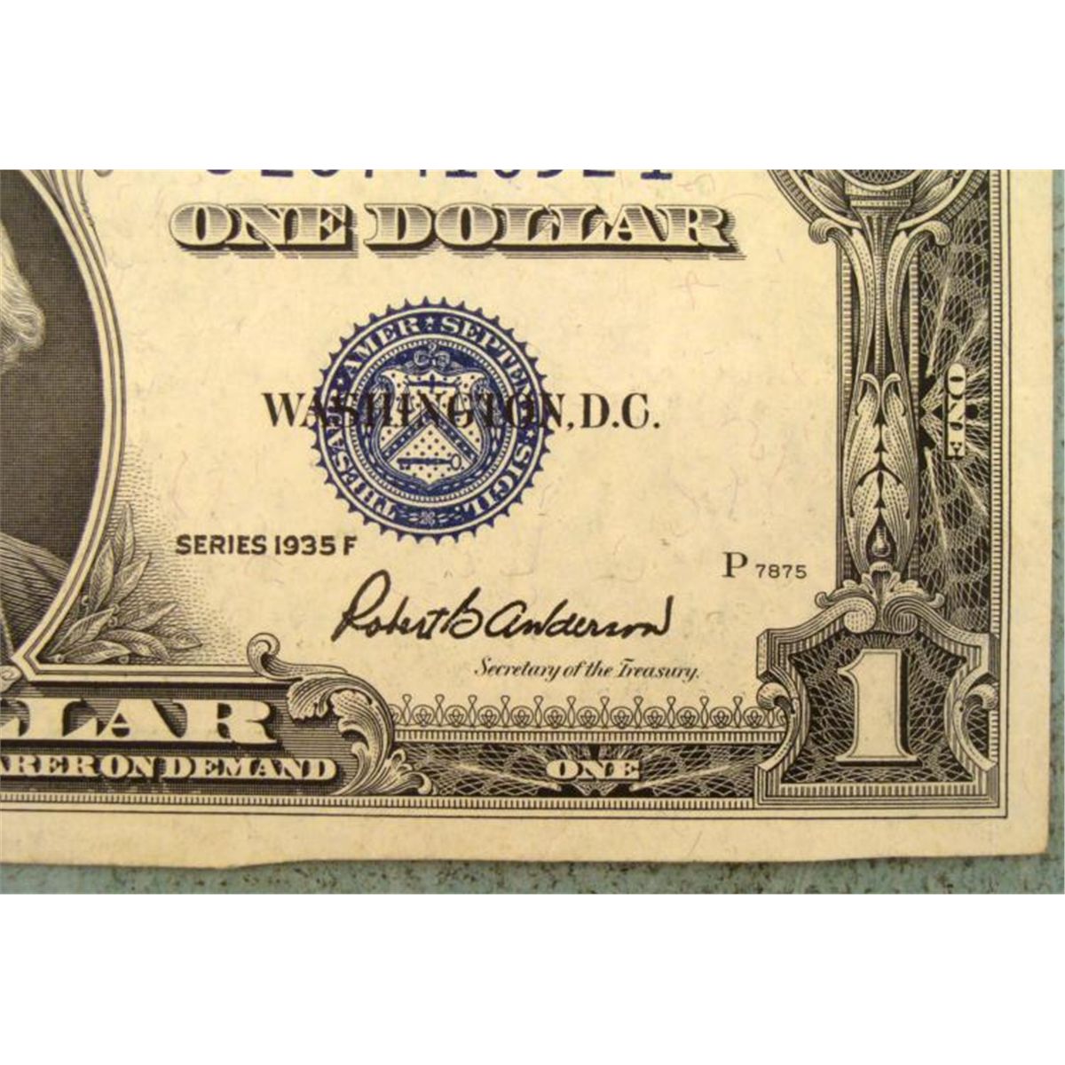 1935 F Series $1 Silver Certificate * Designation: Error -The obverse is misaligned and the lower right is severely cropped (cut)