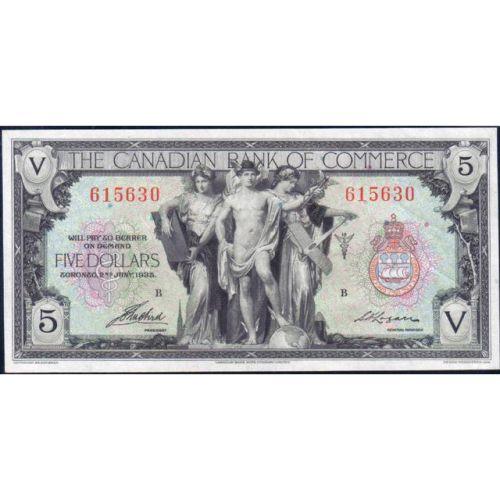 1935 Five Dollars Canadian Bank of Commerce, CH 75-18-02 Serial Number 615630 B, PMG Gem Uncirculated 65 Exceptional Paper Quality