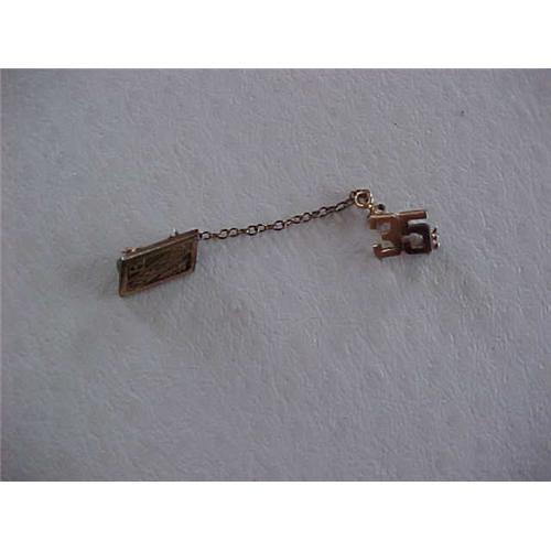 1935 Gold Class Pin. Says "35, chained to rectangular pin about .5". Tarnished. Probably not worn or cleaned since 1935 but that is easy to fix. Fun piece!