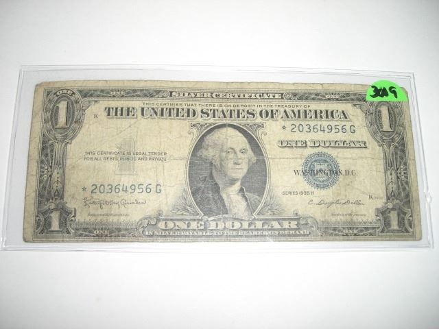 1935 H SERIES RARE *GOOD CONDITION* SILVER CERTIFICATE *STAR NOTE* $1.00 SERIAL # *20364956G. DOLLAR CAME OUT OF SAFE!! ***Coin, Currency & All Items Listed in this auction - Grades, Conditions and Values are not Safe Deposit Coins LLC Responsibilty. Grades, Condition and Values are determined by Consigner(s) & Buyers ONLY