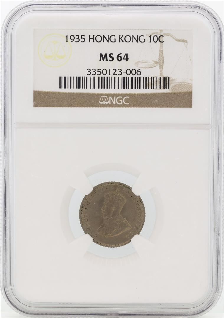 One 1935 Hong Kong 10 Cent Coin NGC MS64. NGC Certified.