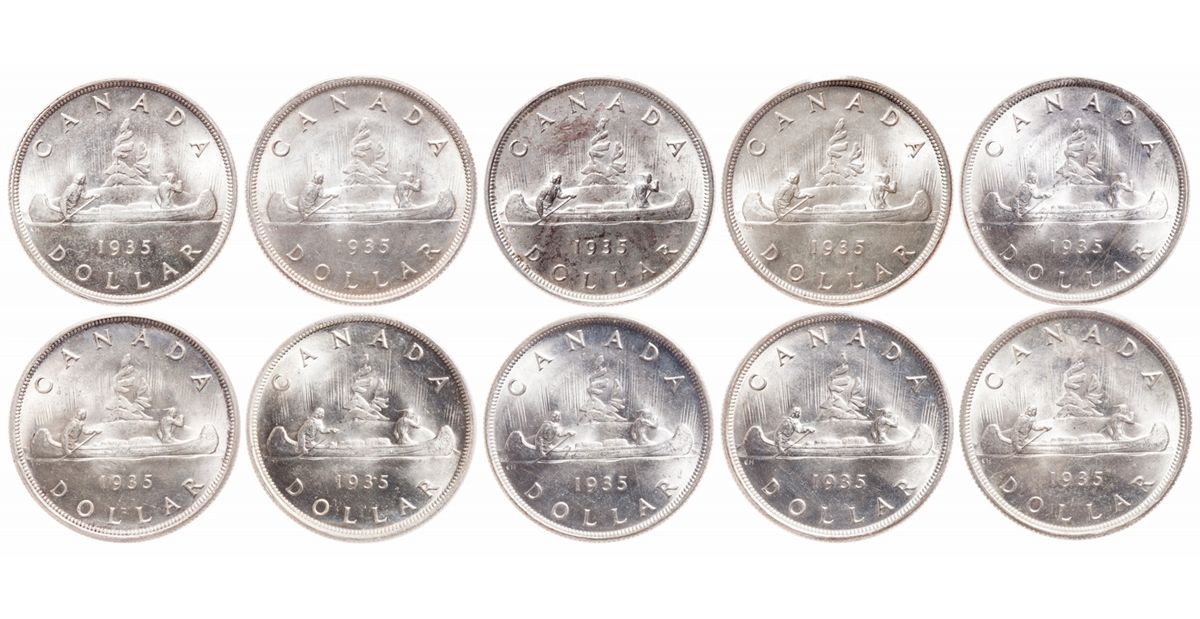 1935. ICCS Mint State-65. Fully brilliant and lustrous. A hand selected lot of ten (10) gem pieces, all with great 'eye-appeal'.