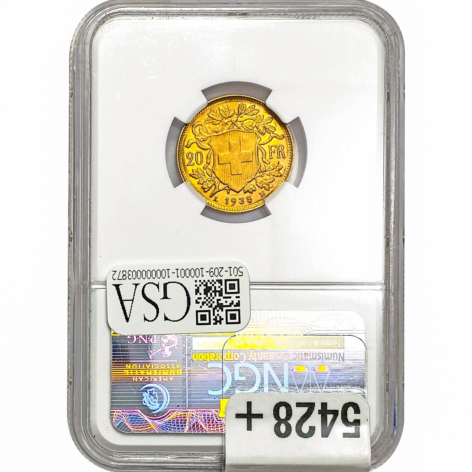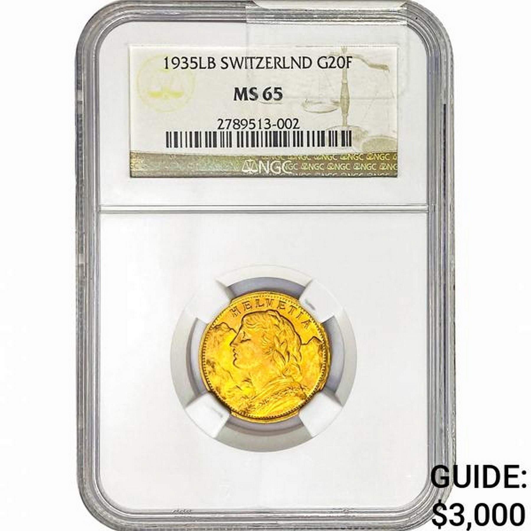 1935 LB Switzerland .186oz Gold 20 Francs NGC MS65