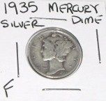 1935 MERCURY SILVER DIME *NICE FINE GRADE*!! DIME CAME OUT OF SAFE!! ***Coin, Currency & All Items Listed in this auction - Grades, Conditions and Values are not Safe Deposit Coins LLC Responsibilty. Grades, Condition and Values are determined by Consigner(s) & Buyers ONLY***