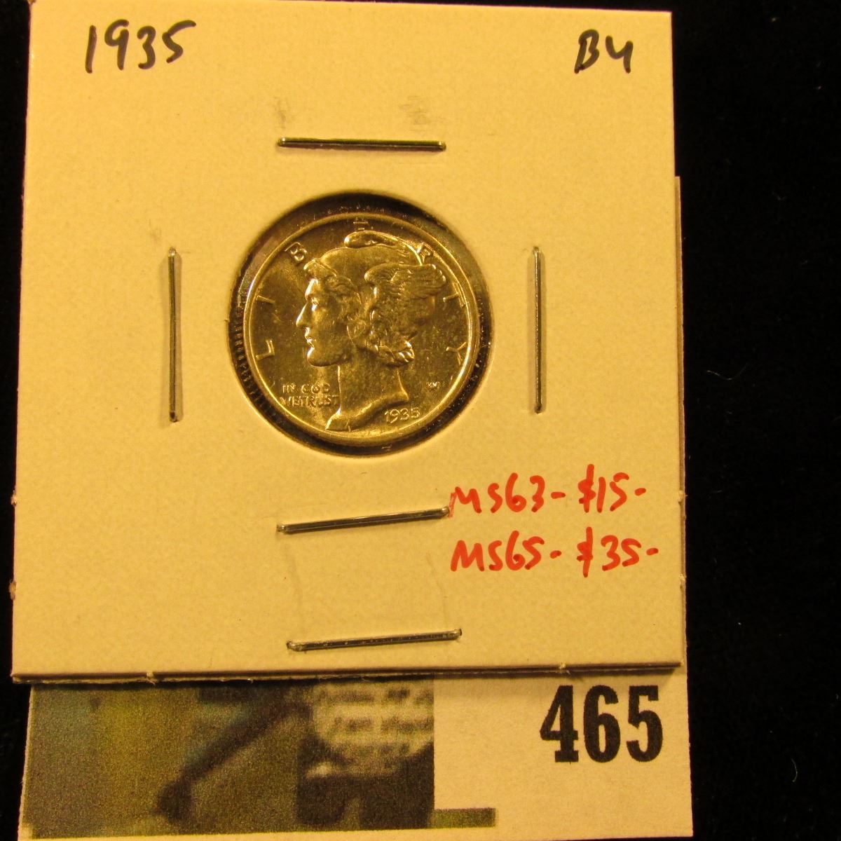 1935 Mercury Dime, BU, MS63=$15, MS65-$35, value $15 to $35