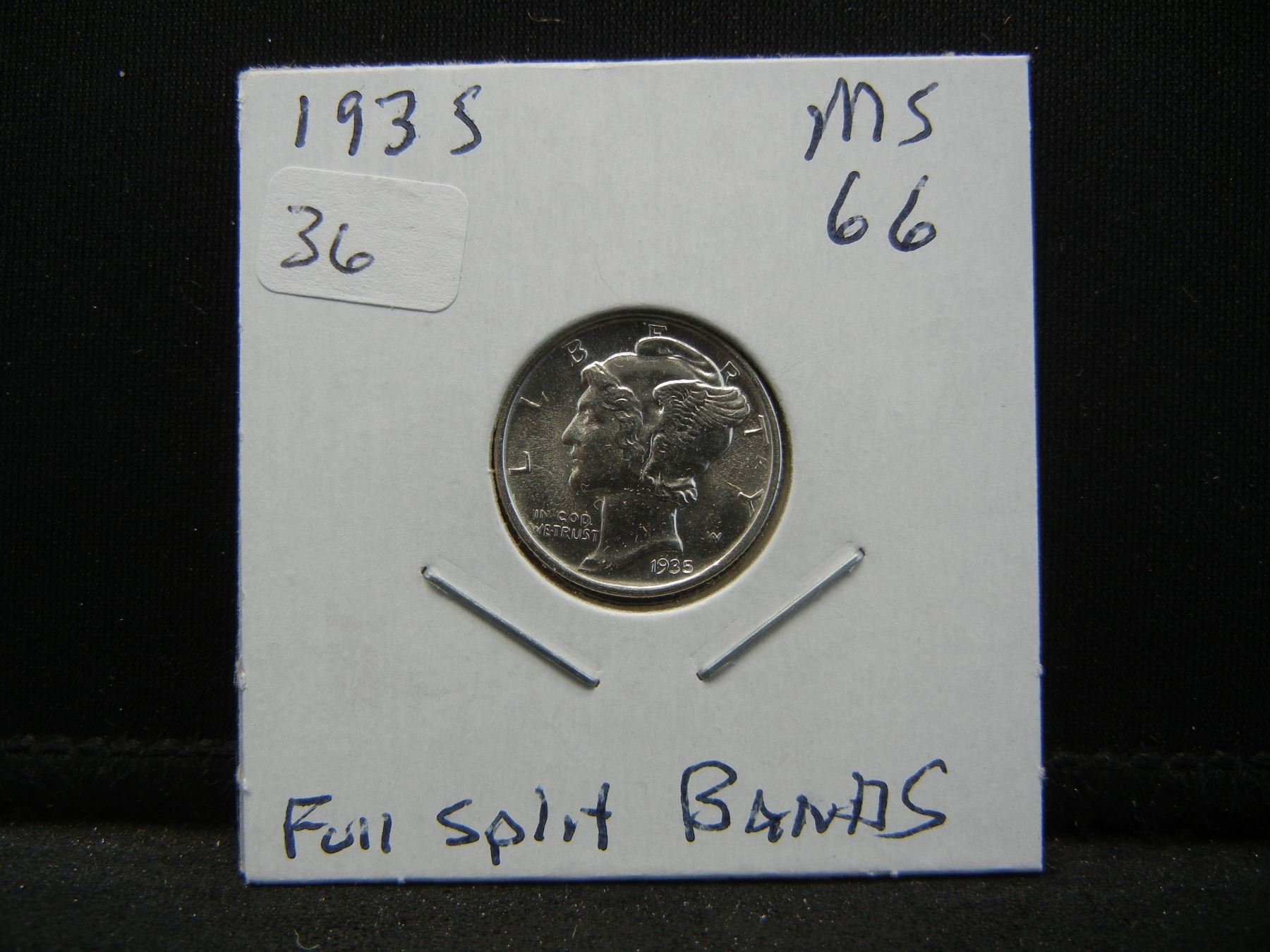 1935 Mercury Dime. MS 66. Full Split Bands.