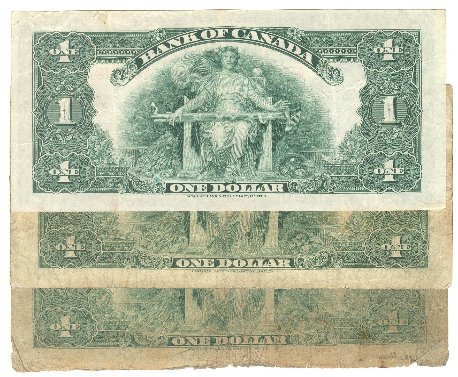 1935 One Dollar English, BC-1, G, VG & VF+, Osborne Towers, serial A5371785, A9510081, A83250873.