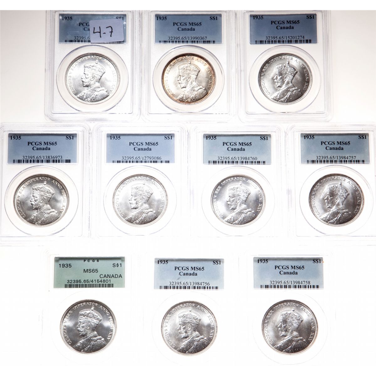 1935. PCGS graded Mint State-65. Gem Brilliant Uncirculated. Lot of ten (10) superb, fully white Gems.