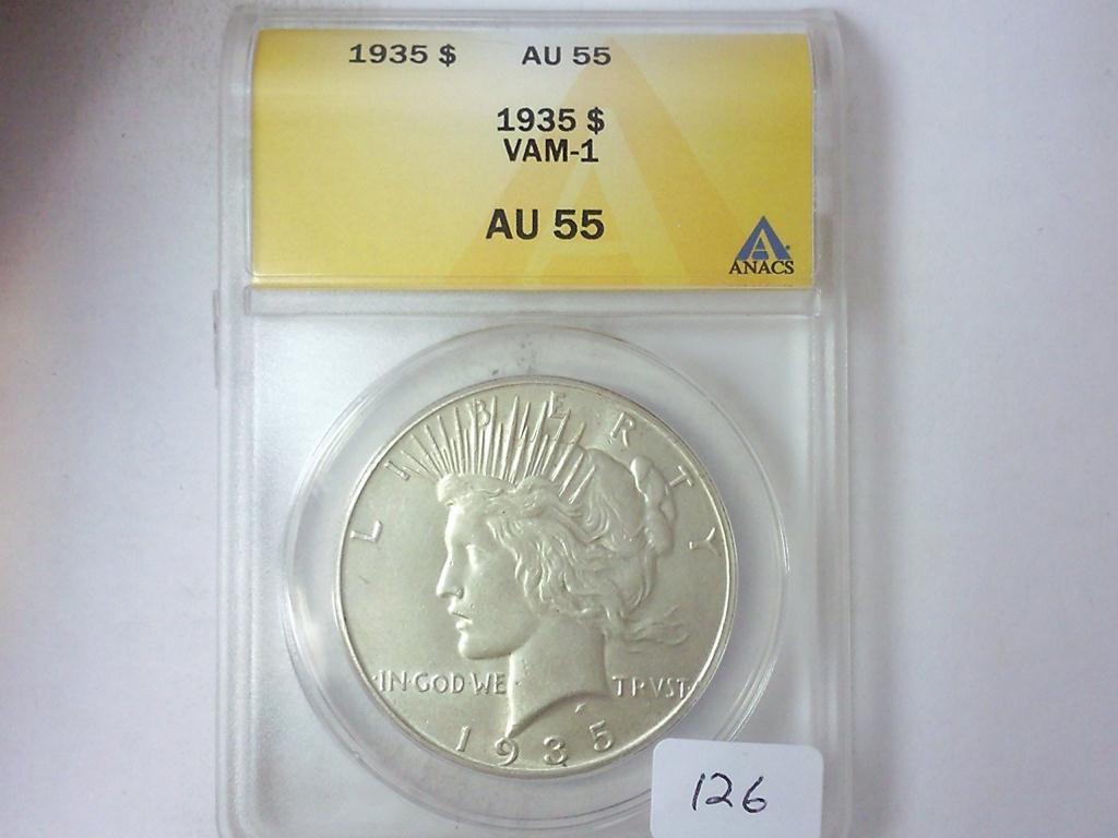 1935 PEACE SILVER DOLLAR ANACS (AU55) VAM-1