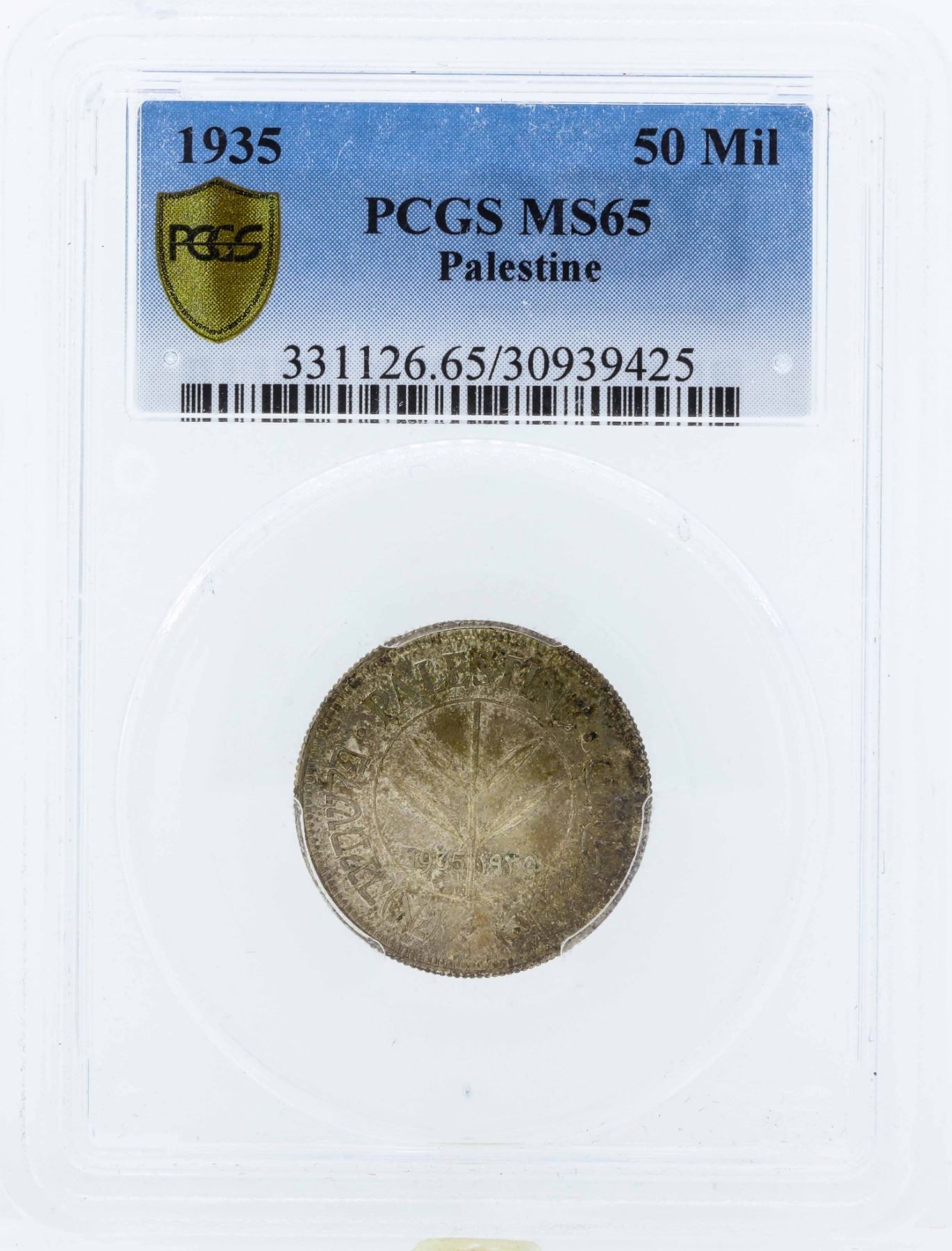 One 1935 Palestine 50 Mils Silver Coin PCGS MS65.