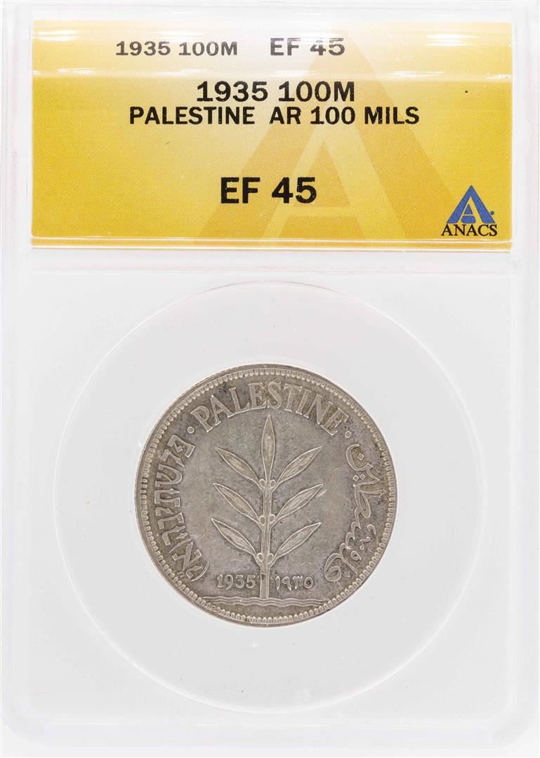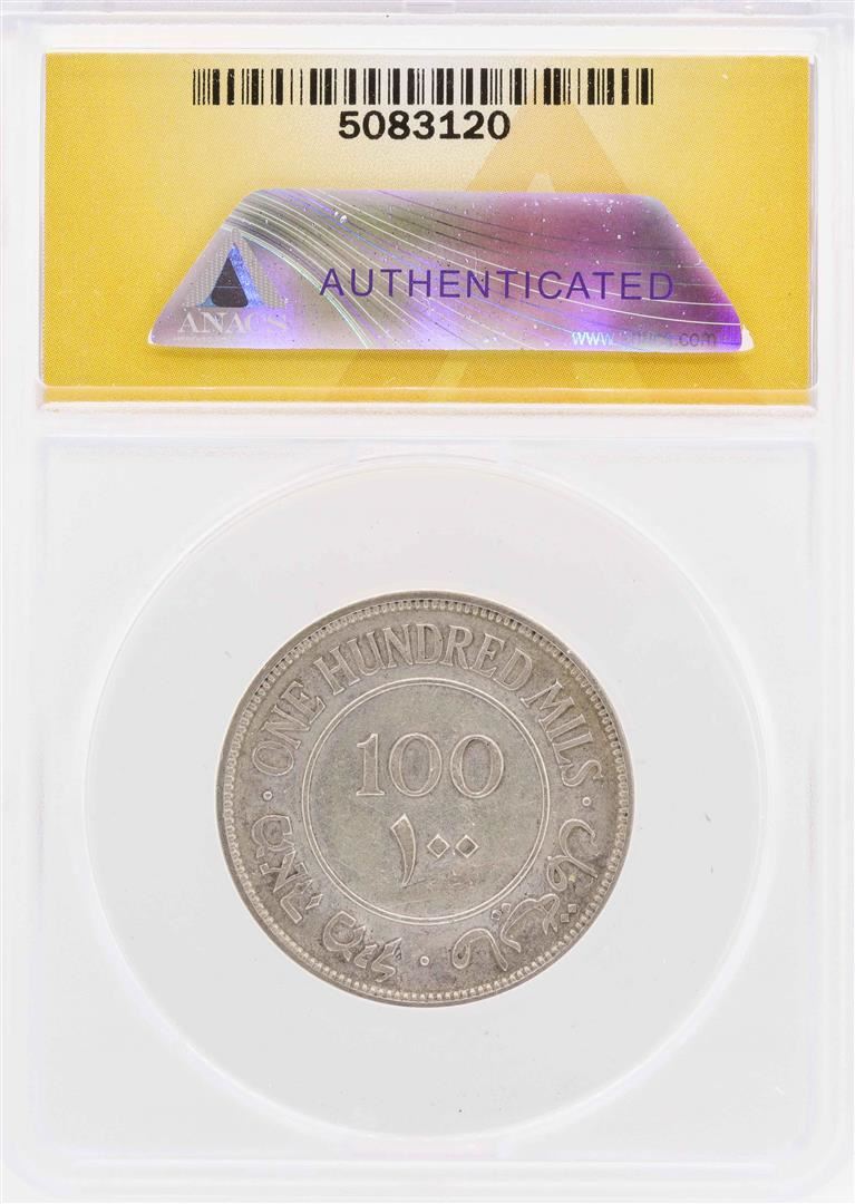 One 1935 Palestine AR 100 Mils Coin ANACS XF45. ANACS Appraised.