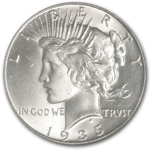 1935 Peace Dollar MS-63 PCGS **|**|** Year: 1935 ; Mint Mark: MS-63 ; Grade: P - Philadelphia ; Denomination: 1 ; MSRP: $200