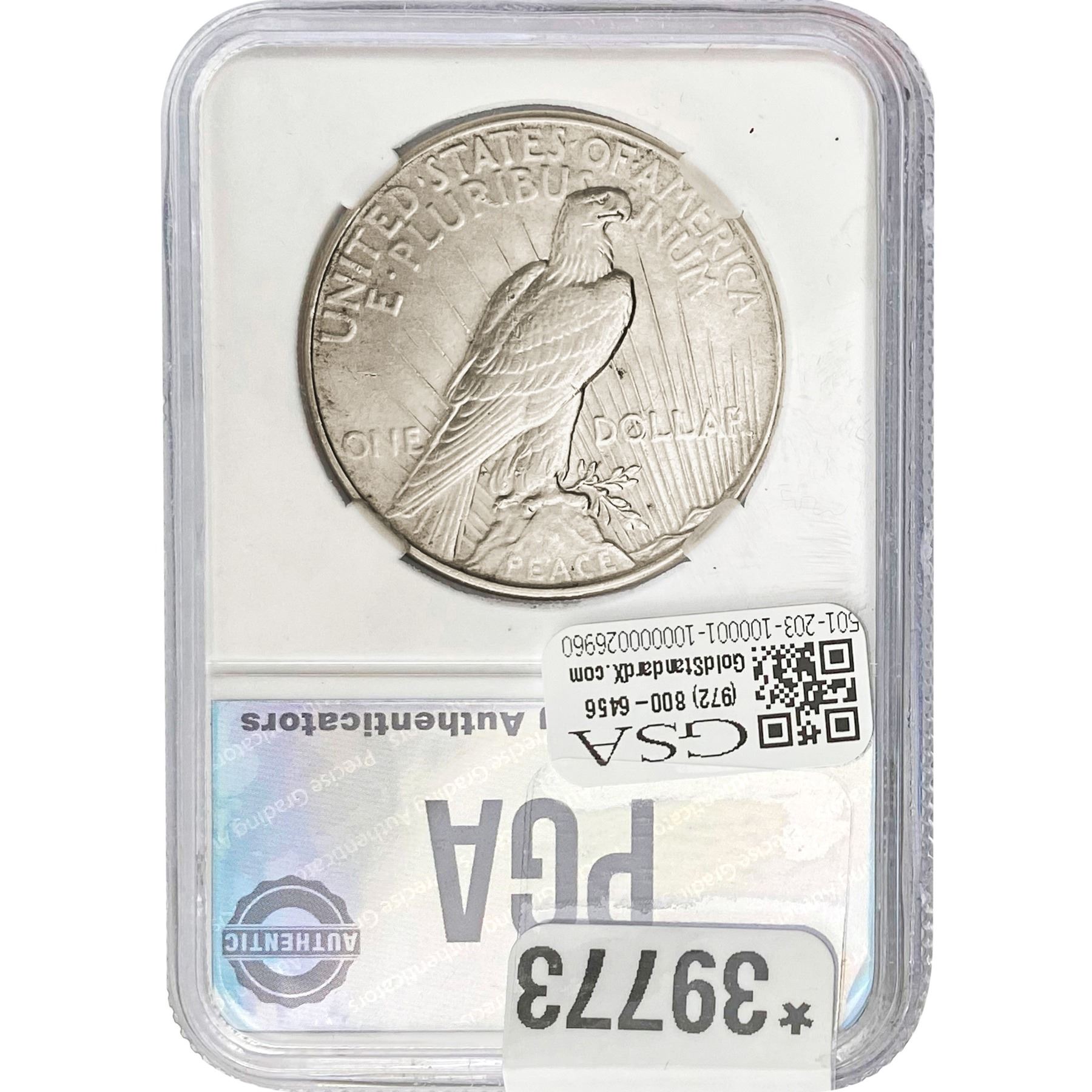 COINS AND CURRENCY LISTED IN GSA’S CATALOG AS GRADED AND ENCAPSULATED BY PCGS, NGC, ANACS, ICG, PCGS CURRENCY, PMG, PCGS BANKNOTE GRADING, CMC OR ANY OTHER THIRD-PARTY GRADING SERVICE ARE LIKEWISE SOLD “AS-IS” EXCEPT AS EXPRESSLY SET FORTH HEREIN. ALL THIRD-PARTY GRADING SERVICE GUARANTEES, INCLUDING AUTHENTICITY, ARE THE SOLE RESPONSIBILITY OF THE THIRD-PARTY GRADING SERVICE AND NOT WARRANTIES OR GUARANTEES OF GSA. BIDDERS SHOULD CONTACT THESE THIRD-PARTY GRADING SERVICES DIRECTLY WITH RESPECT TO ANY CLAIMS OR QUESTIONS THEY MAY HAVE CONCERNING THEIR GUARANTEES AND WARRANTIES. BIDDERS ACKNOWLEDGE AND AGREE THAT AUCTIONEER IS NOT BOUND BY OR LIABLE FOR ANY OPINION OR CERTIFICATION BY ANY THIRD-PARTY GRADING SERVICE. REMOVAL OF A PRODUCT FROM ITS PROTECTIVE CASING OR HOLDER OR ALTERATION OF ANY COIN HOLDER WAIVES ALL RIGHTS CONCERNING THE PRODUCT CONTAINED THEREIN.