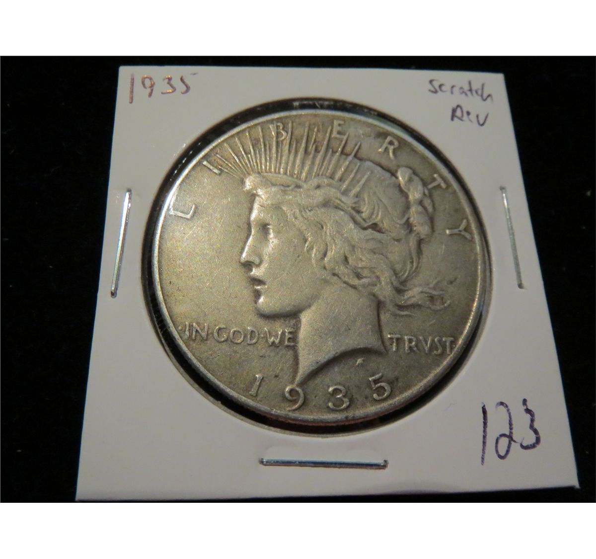 1935 Peace Silver Dollar - Initials scratched on Rev