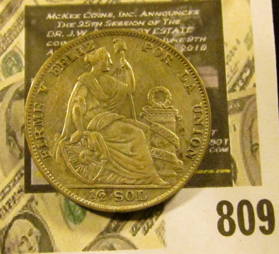 1935 Peru Half Sol, KM216, Y34, .500 fine Silver .2009 ozs. AGW, EF.