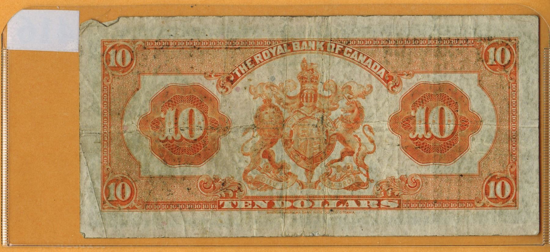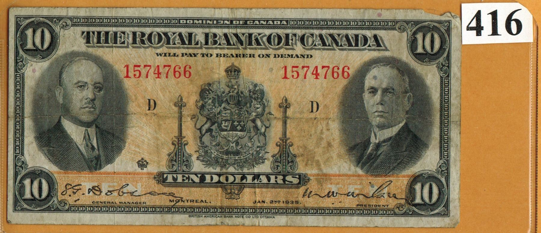 1935 ROYAL BANK of CANADA $10.00 BANKNOTE - Ser. # 1574766 - Fine Condition