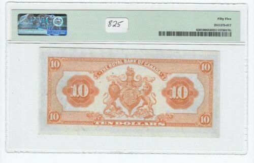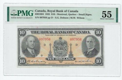 1935 Royal Bank of Canada $10 Note Cat# 630-18-04 SN# 097956 PMG AU-55