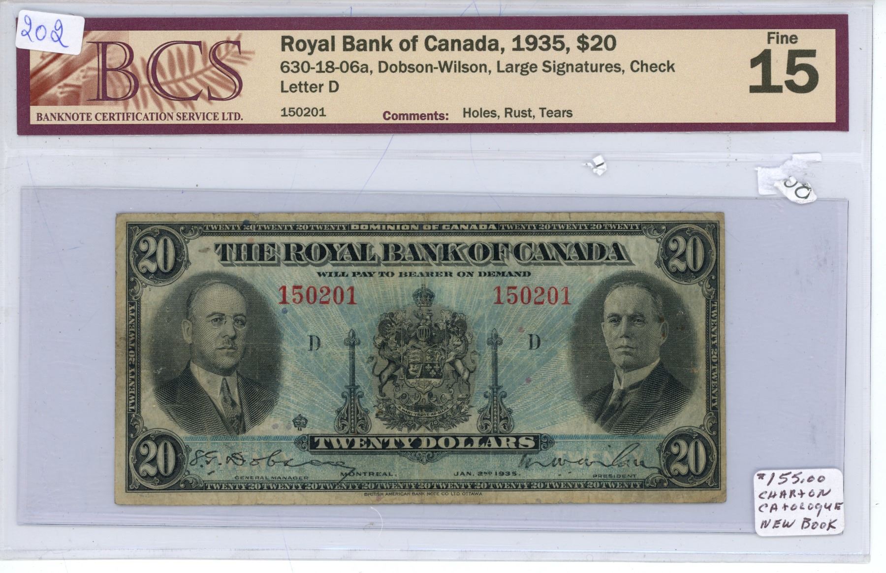 1935 Royal Bank of Canada 20 Dollar Bill - F-15