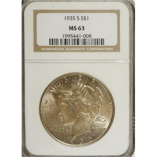 1935-S $1 MS63 NGC. NGC Census: (438/1132). PCGS P