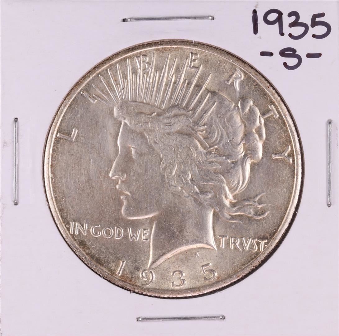One 1935-S $1 Peace Silver Dollar Coin.
