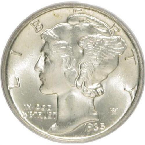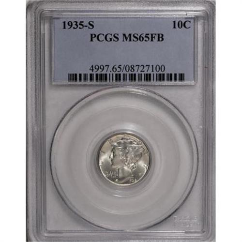 <B>1935-S 10C MS65 Full Bands PCGS.</B></I> PCGS Population (217/198). NGC Census: (47/92). Mintage: 15,840,000. Numismedia Wsl. Price for NGC/PCGS coin in MS65: $392. (#4997)<BR><BR><B>Coin Engraver:</B> Adolph A. Weinman<BR><BR><b>Shipping:</b> Coins & Currency (<a target="_blank" href="http://www.heritageauctions.com/common/shipping.php">view shipping information</a>)