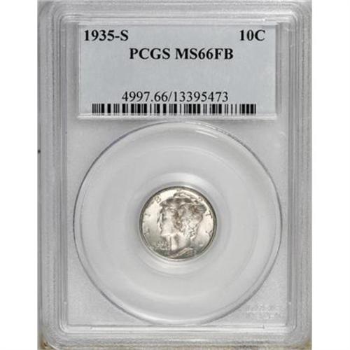 <B>1935-S 10C MS66 Full Bands PCGS.</B></I> PCGS Population (123/73). NGC Census: (66/25). Mintage: 15,840,000. Numismedia Wsl. Price for NGC/PCGS coin in MS66: $525. (#4997)<BR><BR><B>Coin Engraver:</B> Adolph A. Weinman<BR><BR><b>Shipping:</b> Coins & Currency (<a target="_blank" href="http://www.heritageauctions.com/common/shipping.php">view shipping information</a>)