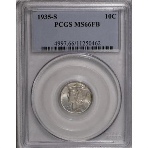 <B>1935-S 10C MS66 Full Bands PCGS.</B></I> PCGS Population (125/73). NGC Census: (66/26). Mintage: 15,840,000. Numismedia Wsl. Price for NGC/PCGS coin in MS66: $525. (#4997)<BR><BR><B>Coin Engraver:</B> Adolph A. Weinman<BR><BR><b>Shipping:</b> Coins & Currency (<a target="_blank" href="http://www.heritageauctions.com/common/shipping.php">view shipping information</a>)