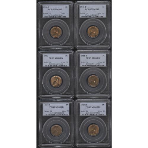 <B>1935-S 1C MS64RD PCGS; 1936 MS66RD PCGS; 1936-S MS65RD PCGS; 1940-D MS66RD PCGS; 1941-D MS66RD PCGS</B></I> and a <B>1946-D MS65RD PCGS.</B></I><BR><BR><b>Shipping:</b> Coins & Currency (<a target="_blank" href="http://www.heritageauctions.com/common/shipping.php">view shipping information</a>)