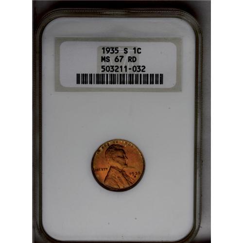 <B>1935-S<1C> MS67 Red NGC.</B></I> A gorgeous orange-red Superb Gem with glimpses of aqua near the rims. Blazing luster bathes suitably struck legends and devices. Census: 44 in 67 Red, 0 finer (5/06).