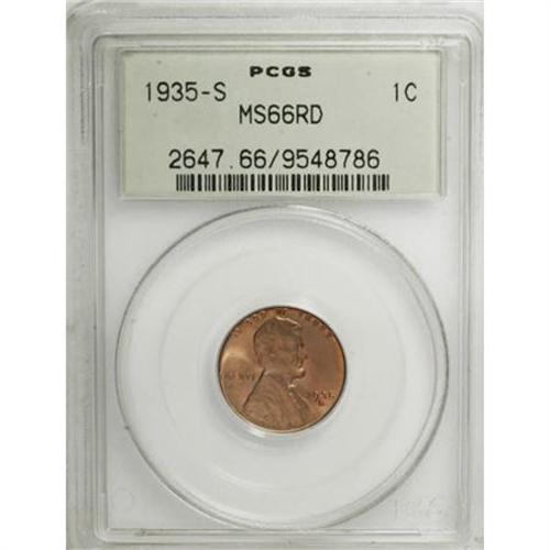 <B>1935-S 1C MS66 Red PCGS.</B></I> . PCGS Population (229/7). NGC Census: (248/43). Mintage: 38,702,000. Numismedia Wsl. Price for NGC/PCGS coin in MS66: $140. (#2647)<BR><BR><B>Coin Engraver:</B> Victor D. Brenner<BR><BR><b>Shipping:</b> Coins & Currency (<a target="_blank" href="http://www.heritageauctions.com/common/shipping.php">view shipping information</a>)
