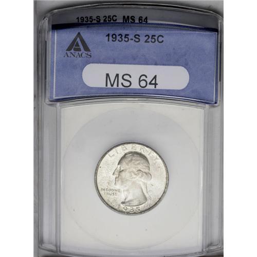 1935-S 25C MS64 ANACS. Well struck and lustrous, with 1935-S[25C] MS64 ANACS.