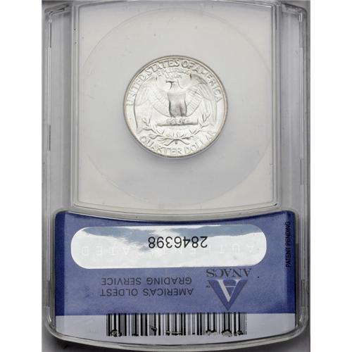 <B>1935-S<25C> MS64 ANACS.</B></I> Well struck and lustrous, with a bright untoned reverse and a small degree of speckled patina on the obverse. Carefully preserved, with two or three ticks on Washington's neck that may be discerned with the aid of a magnifier.