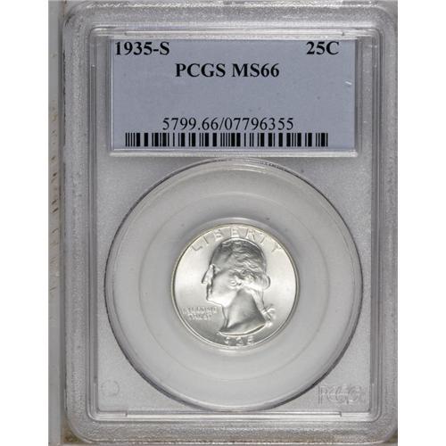 1935-S 25C MS66 PCGS. A practically untoned Premium Ge